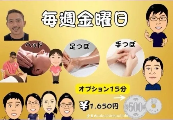 綱島駅から徒歩1分の横浜市港北区にある整体院 楽鎮本院 港北マッサージは、眼精疲労や頭痛、不眠でお悩みの方にぴったりな頭部のマッサージや、オイルマッサージ、はり治療等の施術でお客様の体のお悩みを解決する整骨院です。 当院は、腰痛や肩こり、むち打ち、ケガ、交通事故治療等あらゆることに治療対応させていただいており、予約なしでも施術できますのでお気軽にお立寄り下さい。 営業時間は深夜の12時まで営業しており、また港北区綱島近郊のお客様の元に出向いての出張マッサージにも対応しております。 綱島でもみほぐし店やマッサージ店をお探しの際は、是非ご利用下さい。
